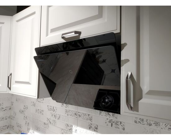 Элегантная наклонная кухонная настенная вытяжка шириной 60 см может использоваться на кухнях очень большой площади (до 40 кв.м). Монтируется на стену над варочной поверхностью. Работает в двух режимах – отвода (при подключении вытяжки к системе вентиляции) и рециркуляции (при использовании сменного угольного фильтра в вытяжке).