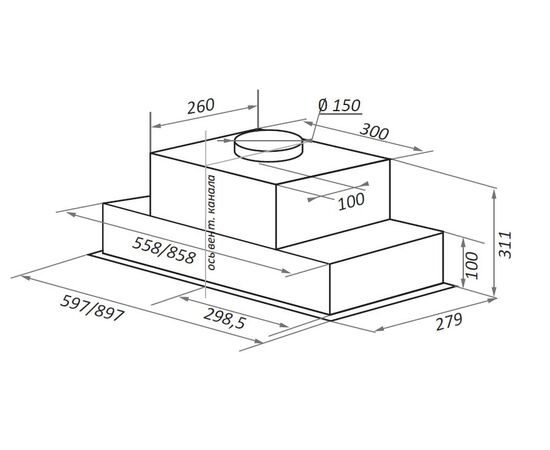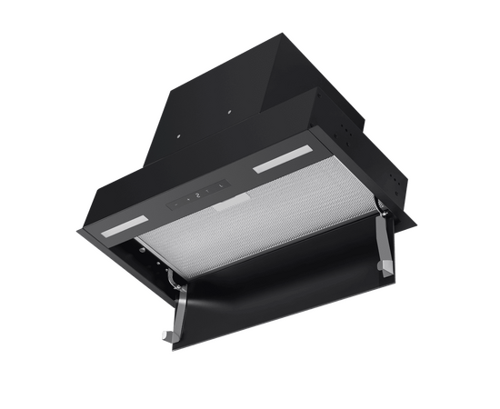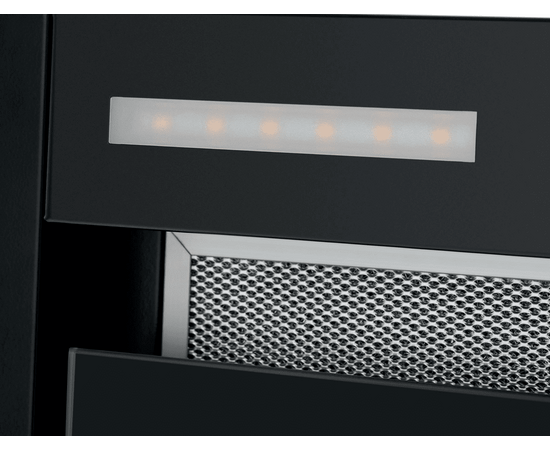 Ультрасовременная встраиваемая кухонная вытяжка шириной 60 см - это беспрецедентное решение для кухни очень большой площади (до 50 кв.м). Модель монтируется в навесной шкаф над поверхностью плиты. Работает в двух режимах – отвода (при подключении вытяжки к системе вентиляции) и рециркуляции (при использовании сменного угольного фильтра в вытяжке).