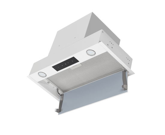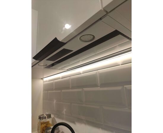 Современная встраиваемая кухонная вытяжка шириной 60 см – оптимальное решение для кухни большой площади до 30 кв.м. Модель встраивается в навесной шкаф над поверхностью плиты. Работает в двух режимах – отвода (при подключении вытяжки к системе вентиляции) и рециркуляции (при использовании сменного угольного фильтра в вытяжке)