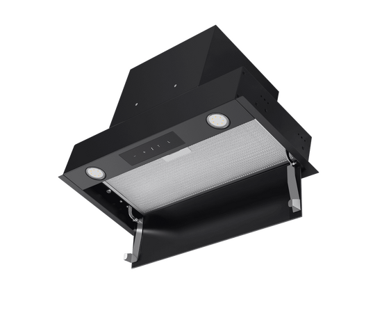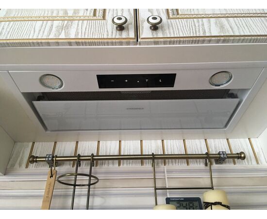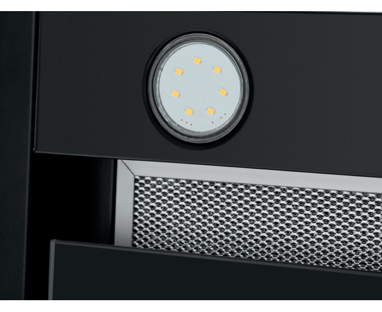 Современная встраиваемая кухонная вытяжка шириной 60 см – оптимальное решение для кухни большой площади до 30 кв.м. Модель встраивается в навесной шкаф над поверхностью плиты. Работает в двух режимах – отвода (при подключении вытяжки к системе вентиляции) и рециркуляции (при использовании сменного угольного фильтра в вытяжке)