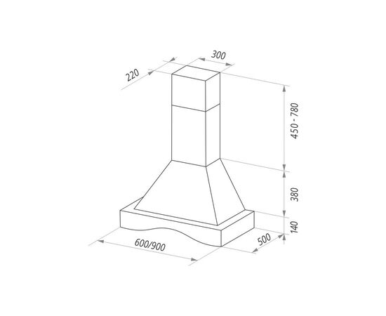 Классическая кухонная вытяжка шириной 60 см относится к купольным и напоминает по внешнему виду камин. Прекрасно подойдет для очень большой кухни (до 40 кв.м). Эта модель монтируется на стену над поверхностью плиты и может работать в двух режимах: отвода (при подключении вытяжки к системе вентиляции) и рециркуляции (при использовании сменного угольного фильтра в вытяжке).