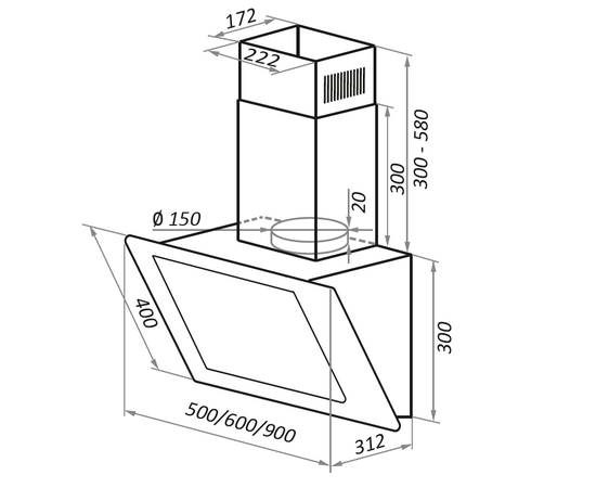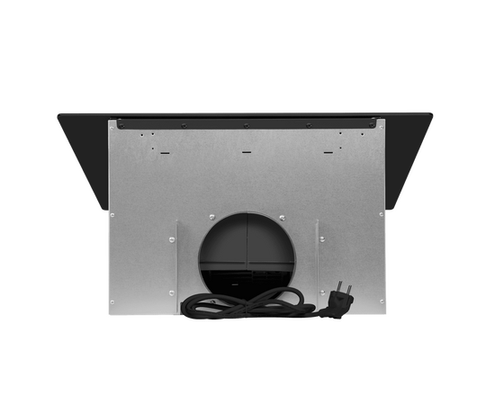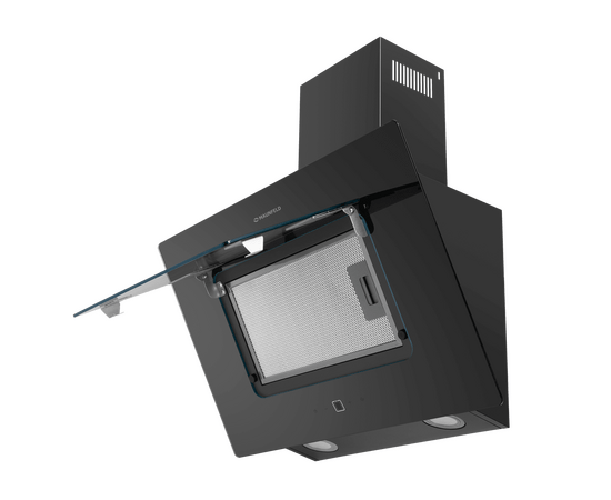 Корпус из нержавеющей стали. Откидная панель из закаленного глянцевого стекла расположена по центру фасада и скрывает алюминиевый жироулавливающий фильтр, который легко вынимается и полностью разбирается для чистки. В данной модели реализовано периметральное втягивание загрязненного воздуха.