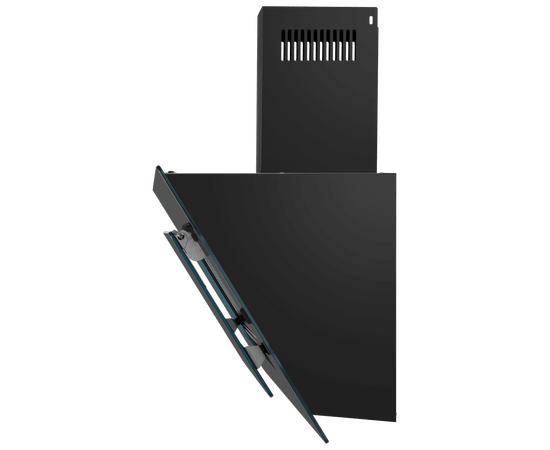 Минималистичная наклонная настенная вытяжка черного цвета шириной 60 см прекрасно подойдет для большой кухни площадью до 20 кв.м. Монтируется на стену над поверхностью плиты и работает в двух режимах – отвода (при подключении вытяжки к системе вентиляции) и рециркуляции (при использовании сменного угольного фильтра в вытяжке).