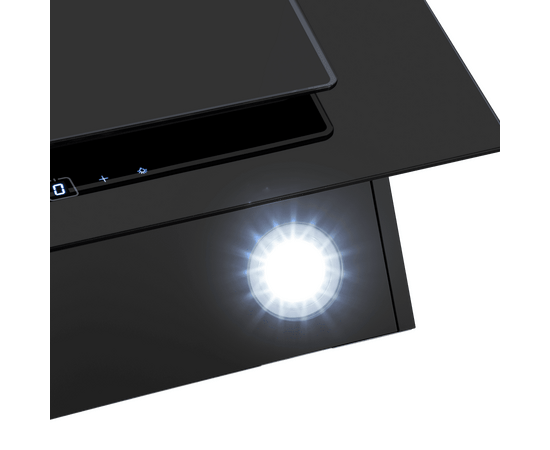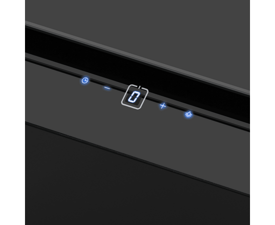 Элегантный сенсорный дисплей располагается в нижней части фасада. Вы можете выбрать одну из 3-х скоростей, активировать таймер автоматического отключения вытяжки (на 9 мин) и включить свет (2 LED- элемента по 1 Вт каждый).