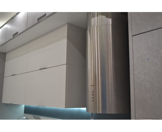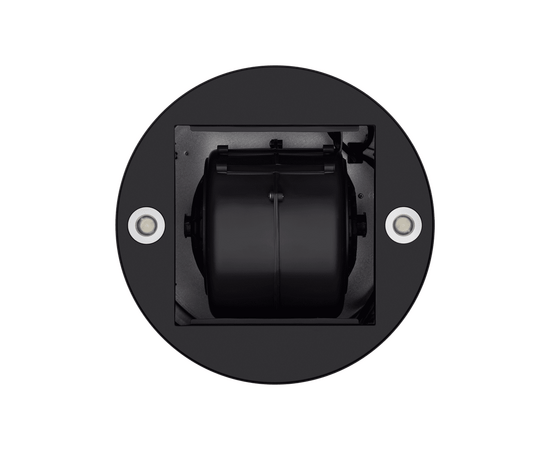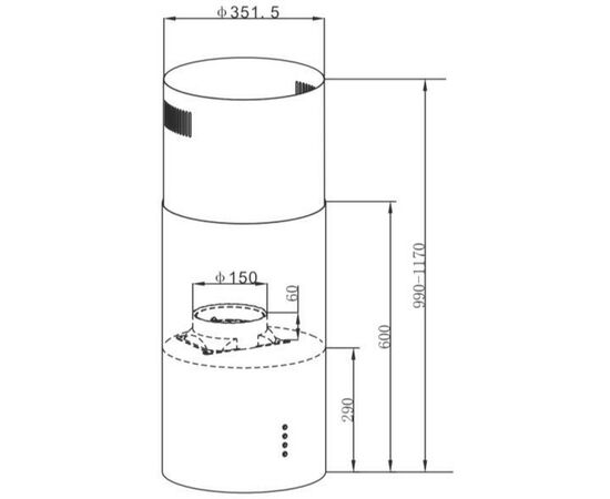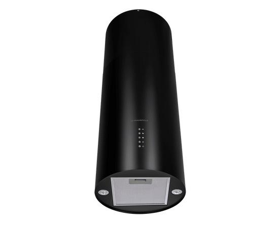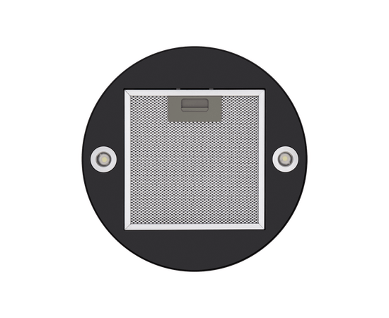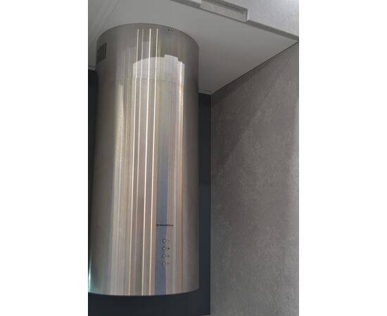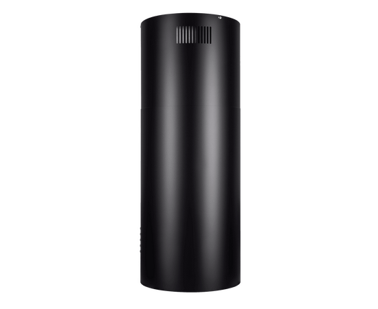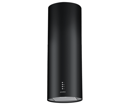 Корпус цилиндрической формы, выполненный из нержавеющей стали с термостойким покрытием черного цвета, крепится на потолок над поверхностью плиты. Алюминиевый многослойный жироулавливающий фильтр находится в нижней части вытяжки.