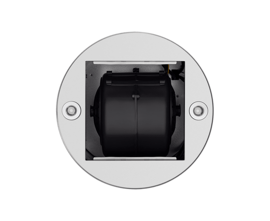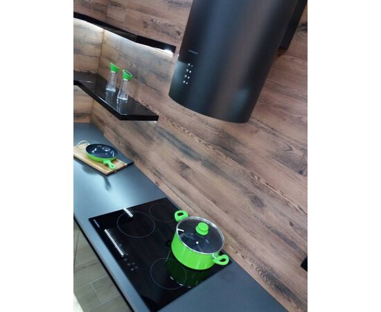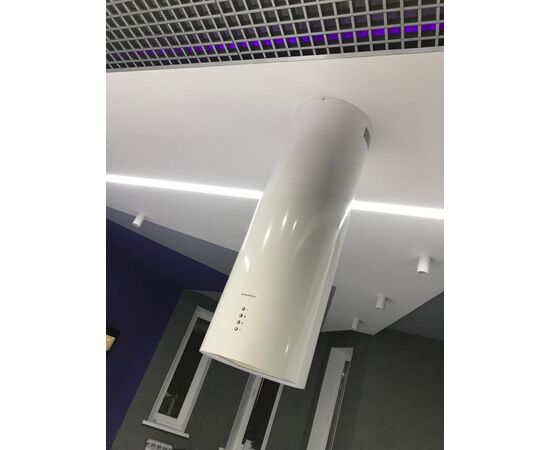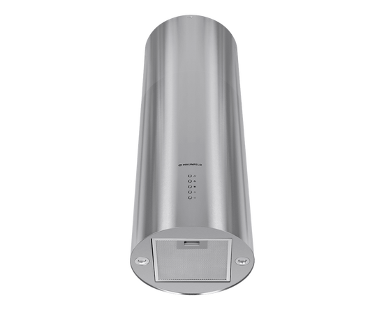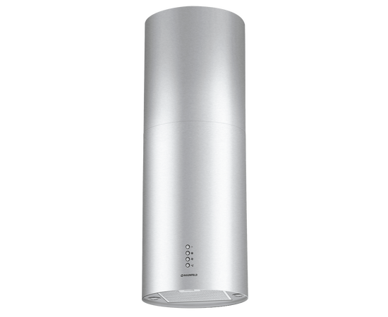 Корпус цилиндрической формы, выполненный из нержавеющей стали с термостойким покрытием черного цвета, крепится на потолок над поверхностью плиты. Алюминиевый многослойный жироулавливающий фильтр находится в нижней части вытяжки.