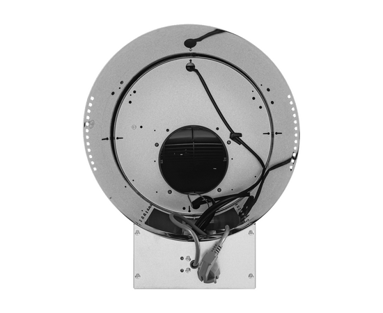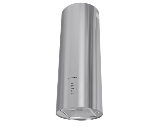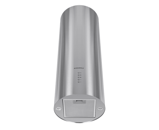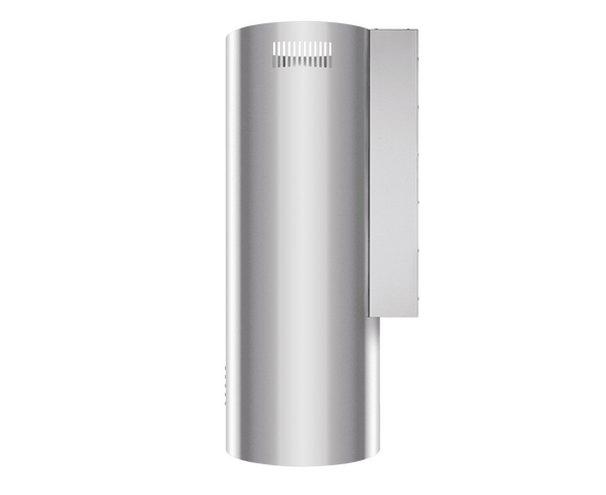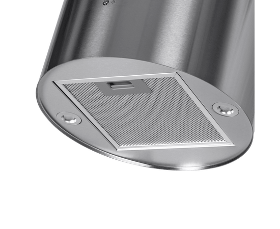 Корпус цилиндрической формы, выполненный из нержавеющей стали, устанавливается на стену над поверхностью плиты. Алюминиевый многослойный жироулавливающий фильтр находится в нижнем торце вытяжки.