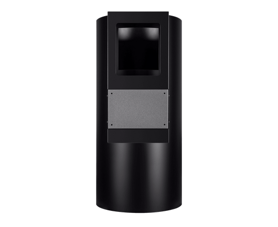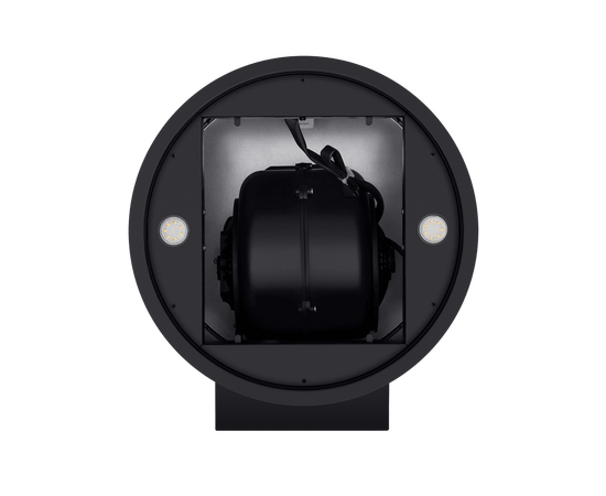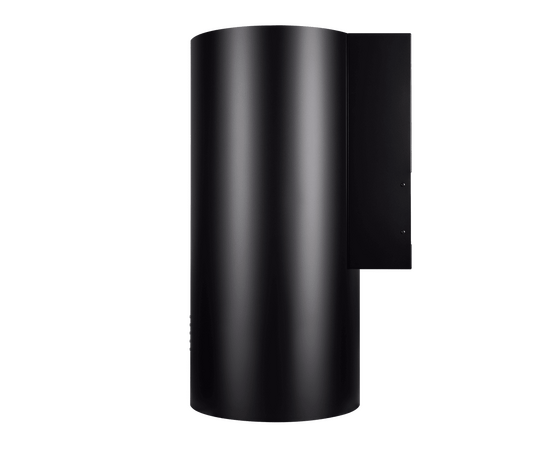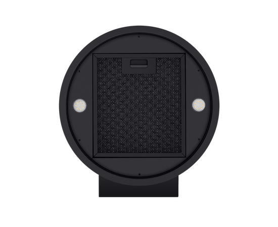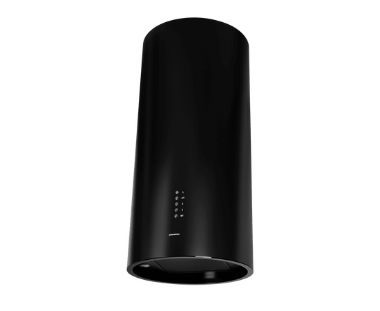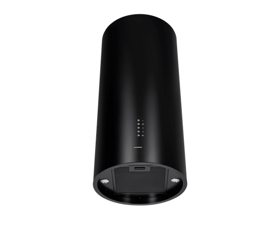 Корпус цилиндрической формы, сделанный из нержавеющей стали с термостойким покрытием, монтируется на стену над варочной поверхностью. Нижний торец вытяжки выполнен в черном акцентном цвете. Специальный многослойный жироулавливающий фильтр легко снимается и полностью разбирается, что сильно упрощает его чистку.