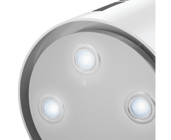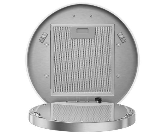 Корпус цилиндрической формы, сделанный из нержавеющей стали с термостойким покрытием, монтируется на стену над варочной поверхностью. Специальный многослойный жироулавливающий алюминиевый фильтр, расположенный в нижнем торце, легко снимается и полностью разбирается, что сильно упрощает его чистку.