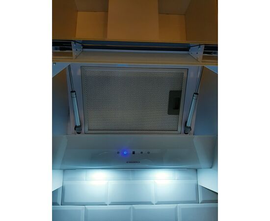Многослойный алюминиевый жироулавливающий фильтр, скрытый за двумя верхними откидными панелями, легко снимается и полностью разбирается, что сильно упрощает чистку.