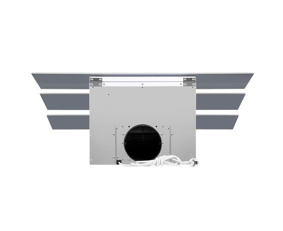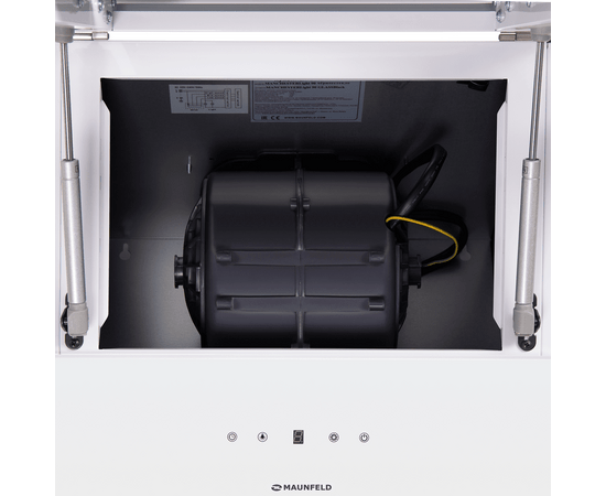Многослойный алюминиевый жироулавливающий фильтр, скрытый за двумя верхними откидными панелями, легко снимается и полностью разбирается, что сильно упрощает чистку.