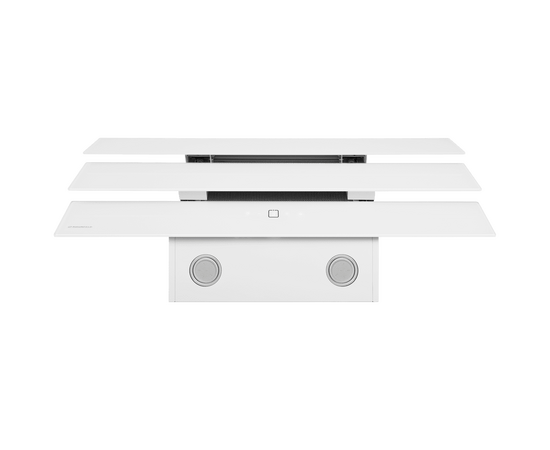 Дизайнерский фасад представляет собой каскад из 3-х сверхпрочных закаленных глянцевых стекол в цвет корпуса. Благодаря такому расположению панелей принцип периметрального всасывания особенно эффективен.