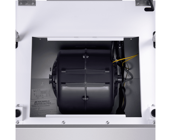 Мощность мотора 192 Вт позволяет достигнуть производительности в 1050 м3/ч, При работе вытяжки на самой высокой скорости уровень шума не выше 54 дБ.