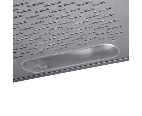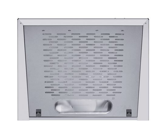 Вытяжка сделана из матированной нержавеющей стали. За съемной декоративной панелью скрыт алюминиевый жироулавливающий фильтр, который имеет продолжительный срок службы и эффективно очищает воздух. Фильтр можно легко снять и помыть.