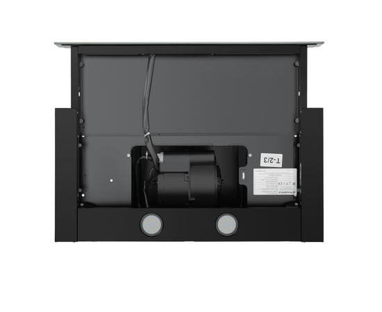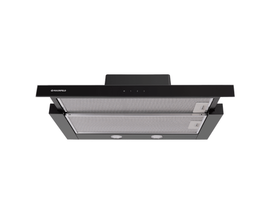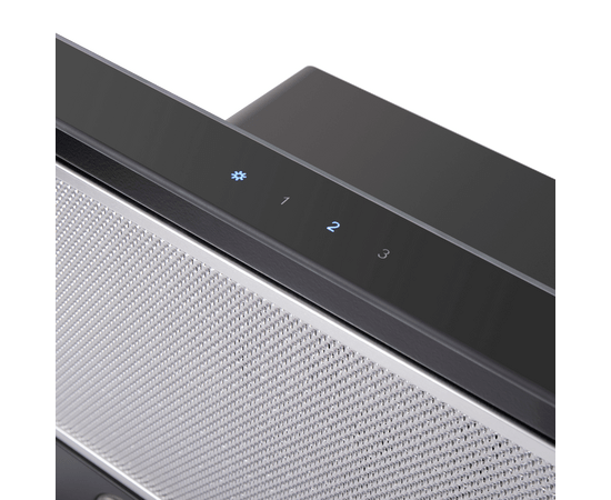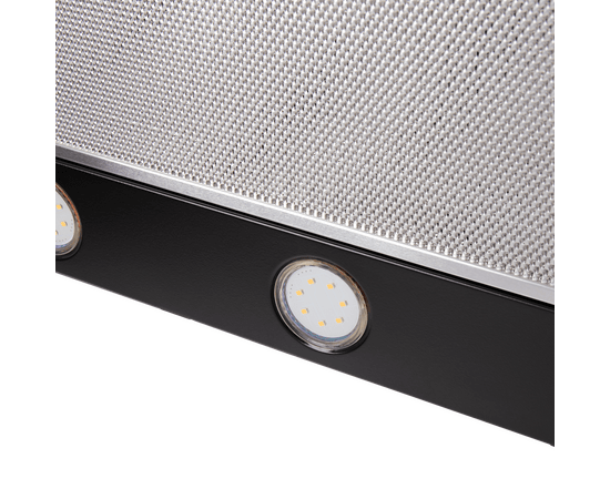 Фасад выдвижной панели выполнен из закаленного глянцевого стекла черного цвета. На основной рабочей и выдвижной панелях, также черного цвета, находятся 2 многослойных жироулавливающих фильтра, которые легко вынимаются, что сильно упрощает чистку. Корпус сделан из нержавеющей стали.