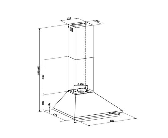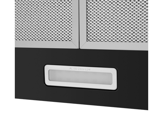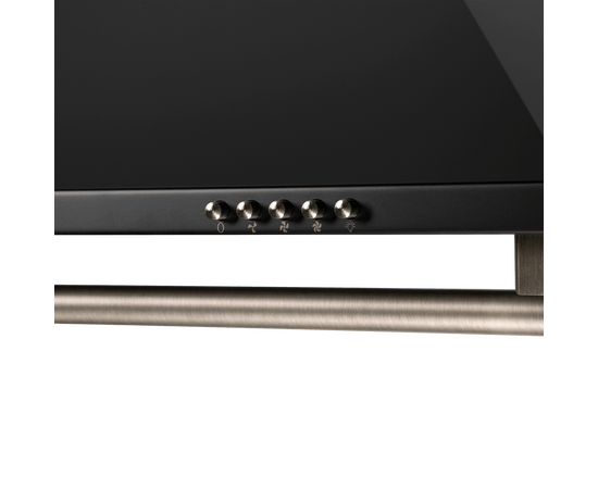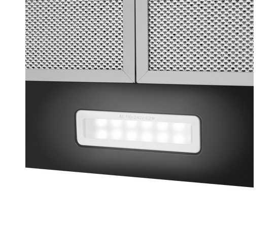 Эргономичная кнопочная система управления вытяжки, находящаяся на правой части фронтальной панели, позволяет выбрать один их 3-х режимов работы и включить освещение. Для подсветки варочной поверхности используется 1 светодиодный источник мощностью 2 Вт, расположенный в тыльной стороне рабочей поверхности.