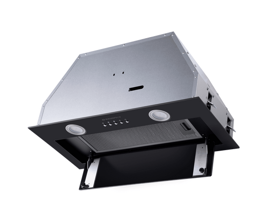 Стильная встраиваемая кухонная вытяжка шириной 60 см идеально подходит для большой кухни. Модель монтируется в навесной шкаф над поверхностью плиты. Может использоваться для отвода воздуха из помещения при подключении к системе домовой вентиляции или очищать воздух с помощью сменного угольного фильтра.