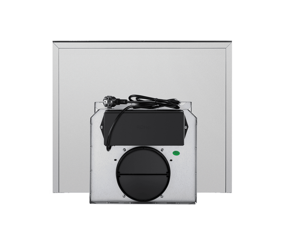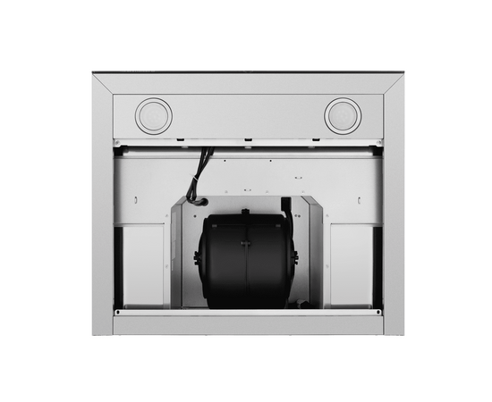 Сенсорная панель управления с дисплеем находится на фасаде, выполненном из закаленного стекла черного цвета. Можно выбрать один из 3-х скоростных режимов работы, установить таймер для выключения вытяжки и активировать светодиодную подсветку (2 светильника по 1,5 Вт).