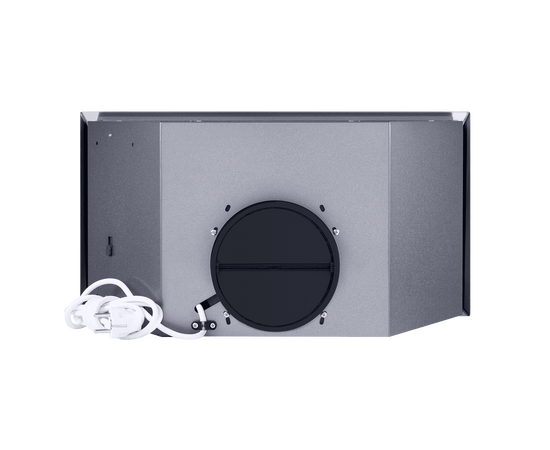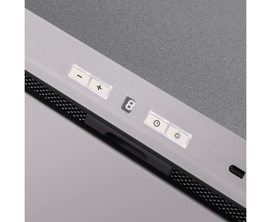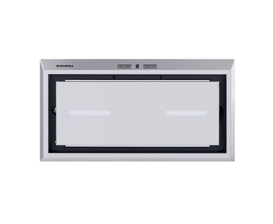 Вытяжка полностью сделана из полированной нержавеющей стали. Откидная панель фиксируется на магнитных защелках и скрывает за собой металлический жироулавливающий фильтр, который легко вынимается для чистки. Загрязненный воздух втягивается по периметру откидной панели.