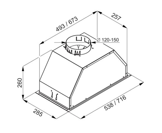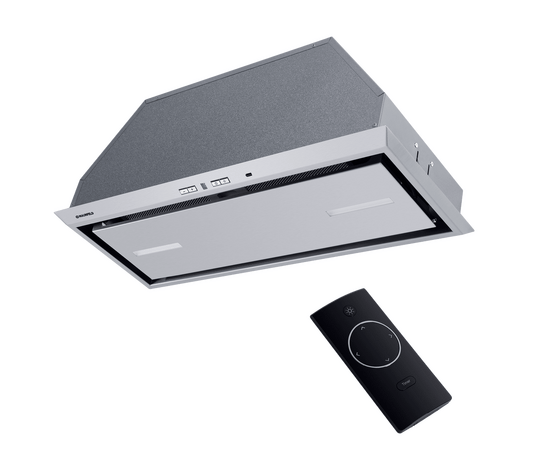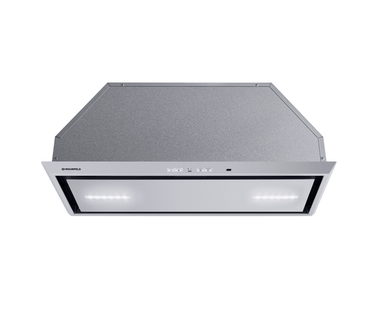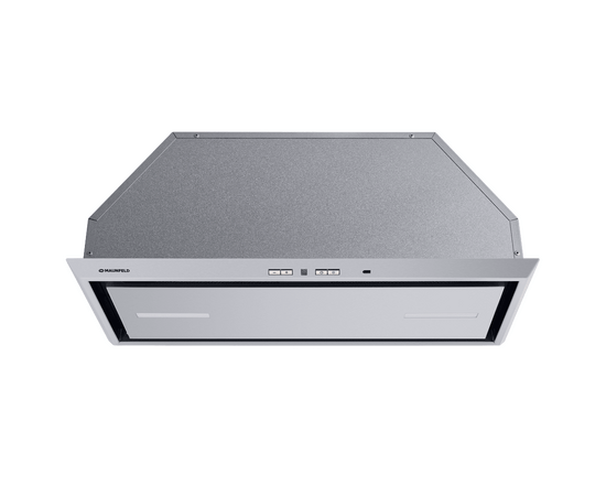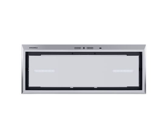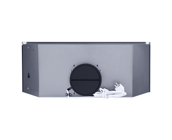 Вытяжка полностью сделана из матированной нержавеющей стали. Откидная панель фиксируется на магнитных защелках и скрывает за собой алюминиевый жироулавливающий фильтр, который легко вынимается для чистки. В модели реализовано периметрическое всасывание воздуха.