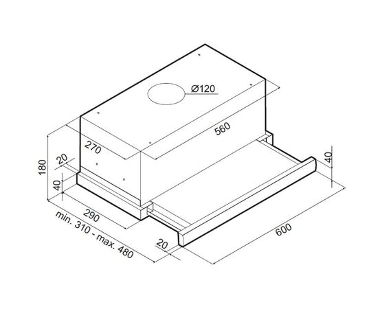 Классическая телескопическая кухонная вытяжка шириной 60 см со специальным выдвижным козырьком, который значительно увеличивает площадь рабочей зоны. Прекрасный выбор для кухни площадью до 20 кв.м. Встраивается в навесной шкаф над варочной поверхностью. Может работать в двух режимах: отвода (при подключении вытяжки к системе вентиляции) и рециркуляции (при использовании сменного угольного фильтра в вытяжке).