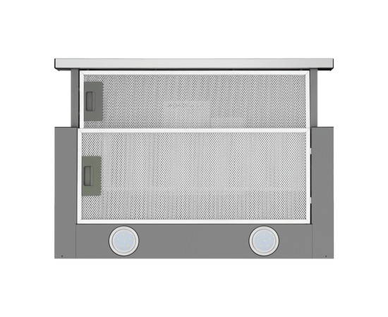 Вытяжка сделана из матированной нержавеющей стали. На основной рабочей и выдвижной панели находятся многослойные жироулавливающие фильтры, выполненные из алюминия. Они легко вынимаются и полностью разбираются, что сильно упрощает их чистку.