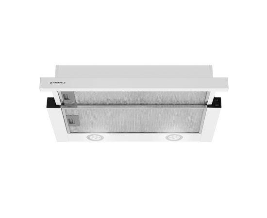 Корпус сделан из нержавеющей стали с качественным покрытием белого цвета. На основной рабочей и выдвижной панели находятся многослойные жироулавливающие фильтры, выполненные из алюминия. Они легко вынимаются и полностью разбираются, что сильно упрощает их чистку.