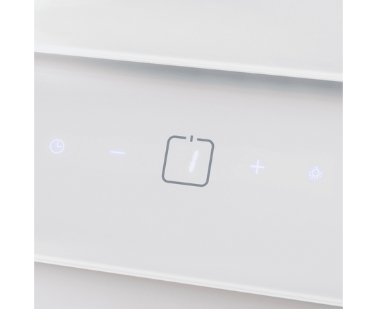 Сенсорное управление с дисплеем расположено в нижней части фронтальной панели. Можно выбрать одну из 3-х скоростей вентилятора, установить таймер и включить светодиодную подсветку (2 ярких Led-источника по 1 Вт).