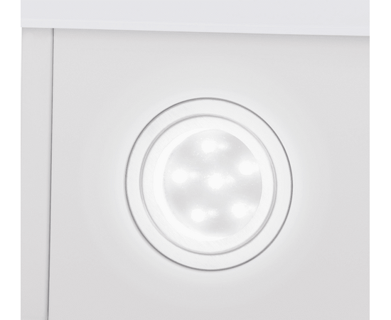 Кнопочное управление, расположенное на фронтальной панели, позволит выбрать одну из 3-х скоростей вентилятора и включить освещение (2 мощных LED-источника по 1 Вт).
