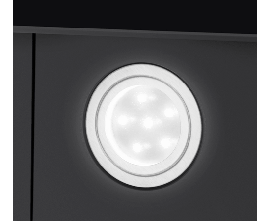 Эргономичное кнопочное управление, расположенное над откидной панелью, позволяет выбрать одну из 3-х скоростей вентилятора и включить освещение (2 светодиодных источника по 1 Вт).