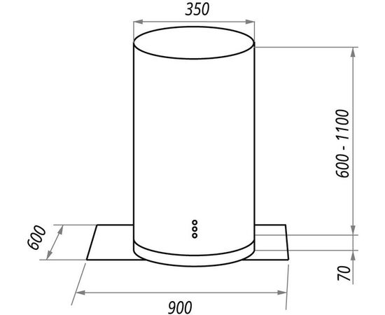 Корпус цилиндрической формы выполнен из матированной нержавеющей стали. Накладная панель из закаленного стекла прямоугольной формы значительно увеличивает площадь рабочей зоны. В нижней части вытяжки находится металлическая откидная панель с перфорацией. За ней скрыт алюминиевый многослойный жироулавливающий фильтр. Он легко вынимается и полностью разбирается, что сильно упрощает чистку.