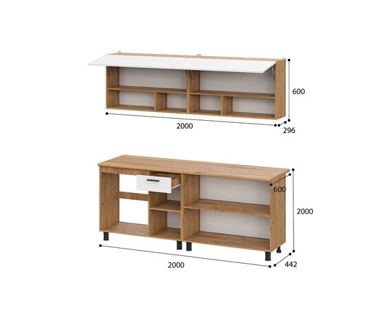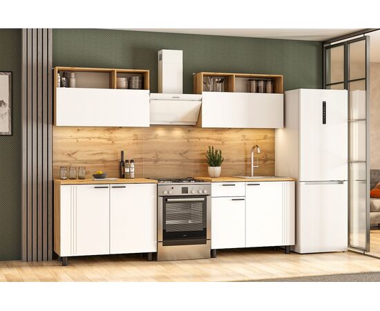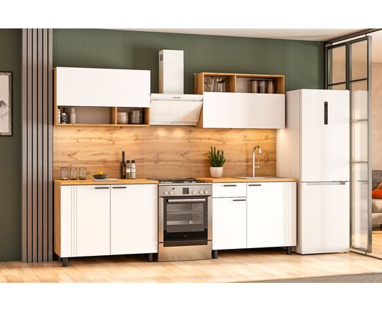 Кухонный гарнитур NN Мебель "Монако K" Серия 2 (2,0 м) Дуб Золотой/Белый матовый/Дуб Вотан