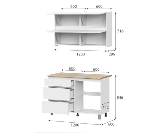 Кухонный гарнитур NN Мебель "Токио" Серия 3 (1,2 м) Белый текстурный/Дуб Сонома