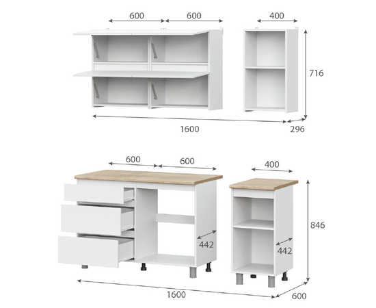 Кухонный гарнитур NN Мебель "Токио" Серия 3 (1,6 м) Белый текстурный/Дуб Сонома