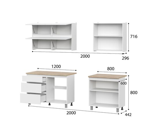 Кухонный гарнитур NN Мебель "Токио" Серия 3 (2,0 м) Белый текстурный/Дуб Сонома