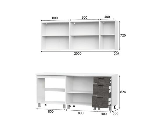 Кухонный гарнитур SV-МЕБЕЛЬ "Модус" без столешницы (2,0 м) Белый/Цемент светлый/Камень т.