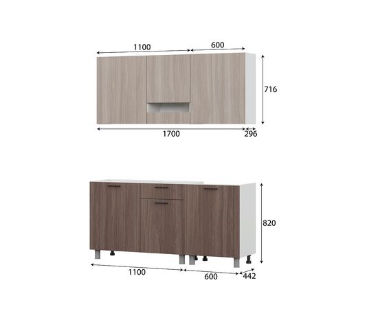 Кухонный гарнитур SV-МЕБЕЛЬ "Розалия" Серия 2 (1,7 м) Ясень Шимо св./Ясень Шимо т./Антарес