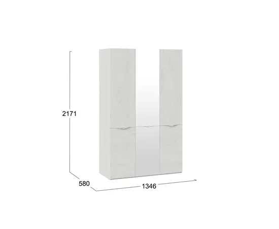 Либерти СМ-297.07.432 Шкаф комбинированный с 2 глухими и 1 зеркальной дверями (дуб крафт белый)