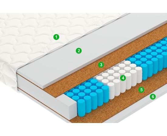 Натуральный материал, состоящий из спрессованных волокон кокосового ореха, полностью пропитанных латексом. Слои из прочной и долговечной кокосовой койры используются для придания матрасу дополнительной жесткости.