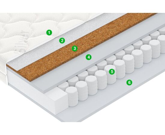 Натуральный материал, состоящий из спрессованных волокон кокосового ореха, полностью пропитанных латексом. Слои из прочной и долговечной кокосовой койры используются для придания матрасу дополнительной жесткости.