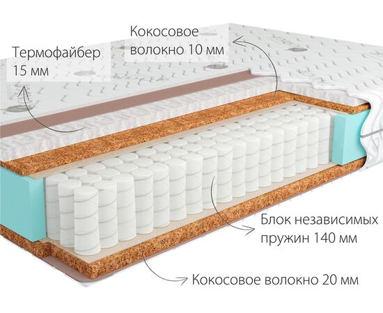 Термофайбер изготавливается из прочных полиэфирных волокон. Волокно хорошо сопротивляется сжатию, напоминая работу пружин, что придаёт матрасу дополнительный ортопедический эффект.