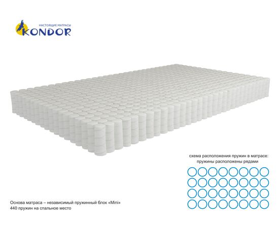 В матрасах «Кондор» используются настилы из термофайбера с высокой плотностью (600 г/м2). В настилах не применяется пенополиуретан (поролон), что делает продукцию более экологичной, безопасной и долговечной.