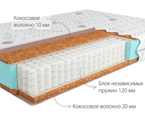 В процессе изготовления кокосовые листы пропитывают натуральным латексом, благодаря чему они приобретают упругость, быстро восстанавливают первоначальную форму, не имеют остаточной деформации. Плотность материала – 100 кг/м3.