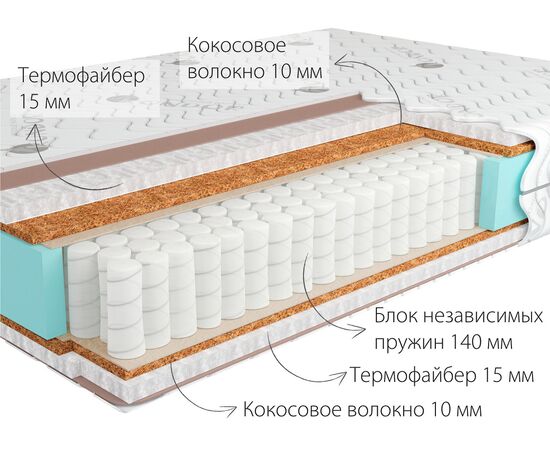 Термофайбер изготавливается из прочных полиэфирных волокон. Волокно хорошо сопротивляется сжатию, напоминая работу пружин, что придаёт матрасу дополнительный ортопедический эффект.