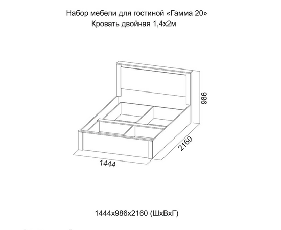 Модульная система Гамма 20 К Кровать двойная (универсальная 1,4х2,0) без основания Серия №4 Ясень Анкор светлый / Сандал светлый
