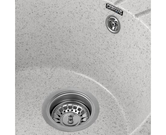 Композитные мойки Gerhans изготовлены на основе природных минералов (80% мраморной крошки и 20% полимерных связующих). По прочности и долговечности композитный материал приближен к характеристикам натурального камня. На мойках, установка которых, возможна чашей, как слева, так и справа, отверстие под смеситель ВЫСВЕРЛИВАЕТСЯ ФРЕЗОЙ (35 мм)!