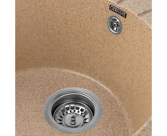 Композитные мойки Gerhans изготовлены на основе природных минералов (80% мраморной крошки и 20% полимерных связующих). По прочности и долговечности композитный материал приближен к характеристикам натурального камня. На мойках, установка которых, возможна чашей, как слева, так и справа, отверстие под смеситель ВЫСВЕРЛИВАЕТСЯ ФРЕЗОЙ (35 мм)!