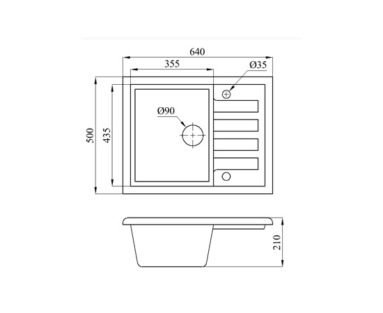 Отверстие под смеситель вырезается в зависимости от расположения крыла и чаши.