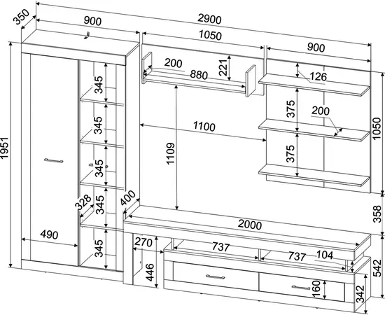 Набор мебели для жилой комнаты LOFT-9 (Гостиная-5) без полки