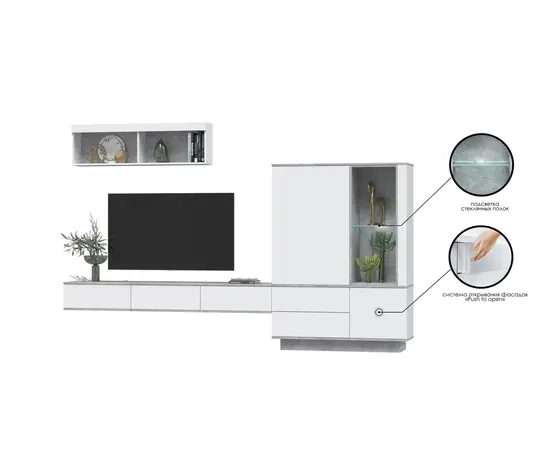 В комплект входит: Шкаф комбинированный Quartz QZ-ШК2; Полка Quartz QZ-П1; Тумба (ТВ) Quartz QZ-Т3Ш. Возможна комплектация подсветкой. Стоимость указана за набор без подсветки.